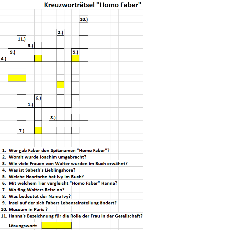 (Liste) Freizeitbeschäftigung Kreuzworträtsel