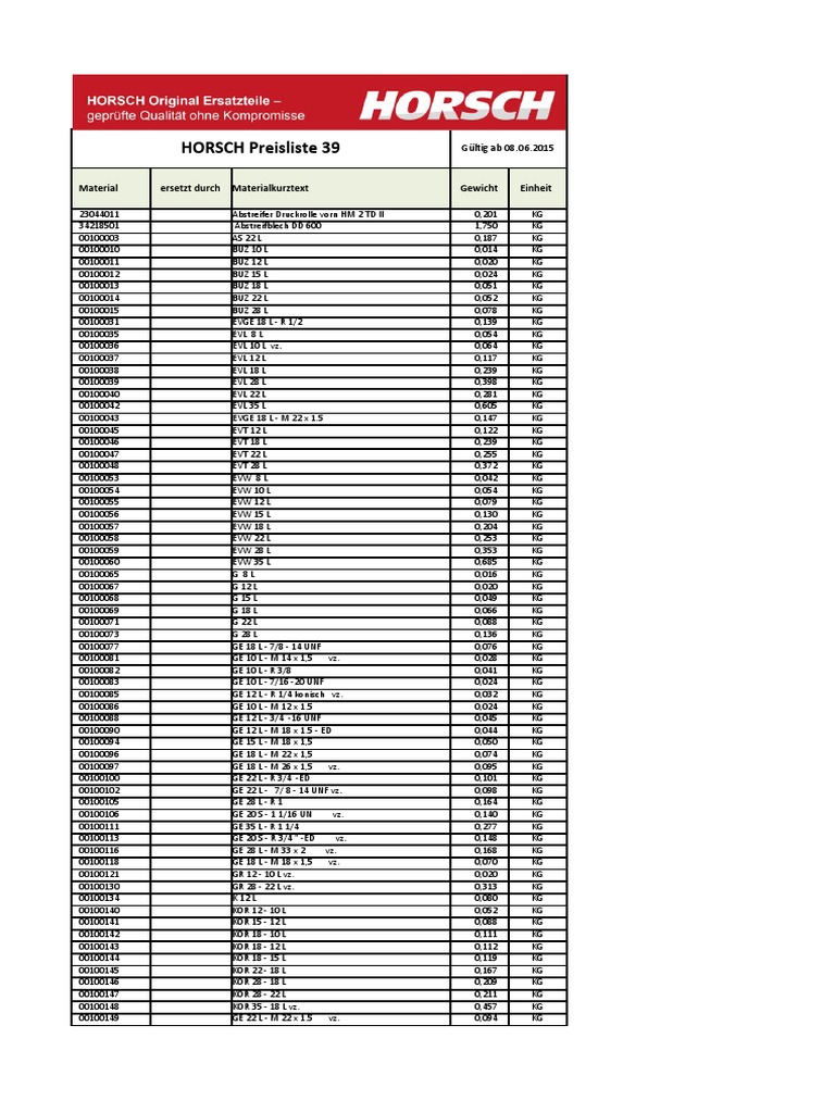 Zapchasti Preisliste Horsch 4